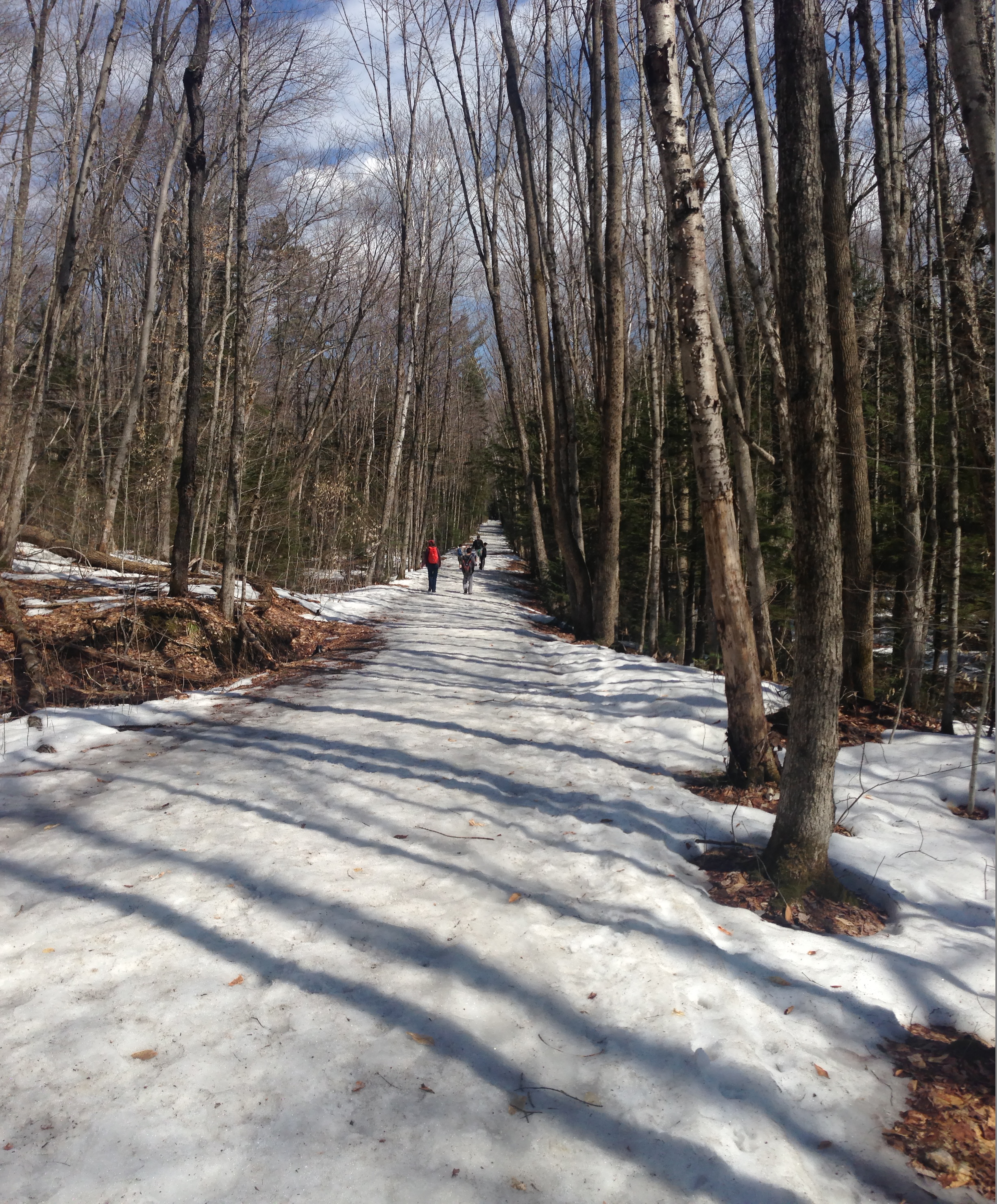 It was a P E R F E C T day in the White Mountains. Every factor converged to render the hike for some of our newest scouts an experience worth remembering. The trail we selected was an alternate. Winter is releasing it’s grip slowly this year and it made no sense to lead the boys on a “post holing” adventure on some of the trails we initially considered. Instead we selected the Lincoln Woods trail to Franconia Falls. trail ahead